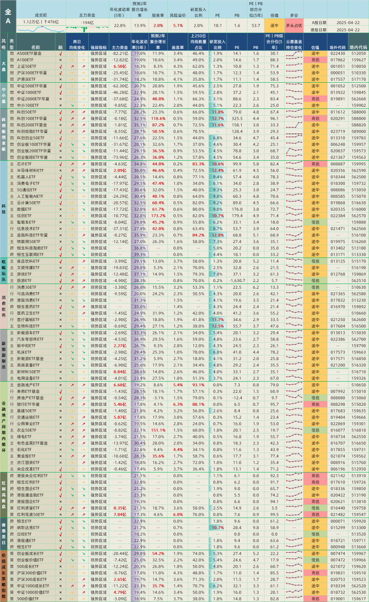 均线位置显示,金融科技、恒生医药、医药卫生、食品饮料、1000价值、300成长站上20日均线,短期趋势有所转变。如果市场继续回暖,在弱势区域的细分科技(人工智能、机器人、信创)也有挑战20日均线的可能。